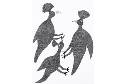 Mother Bird feading her Chicks Gond Painting